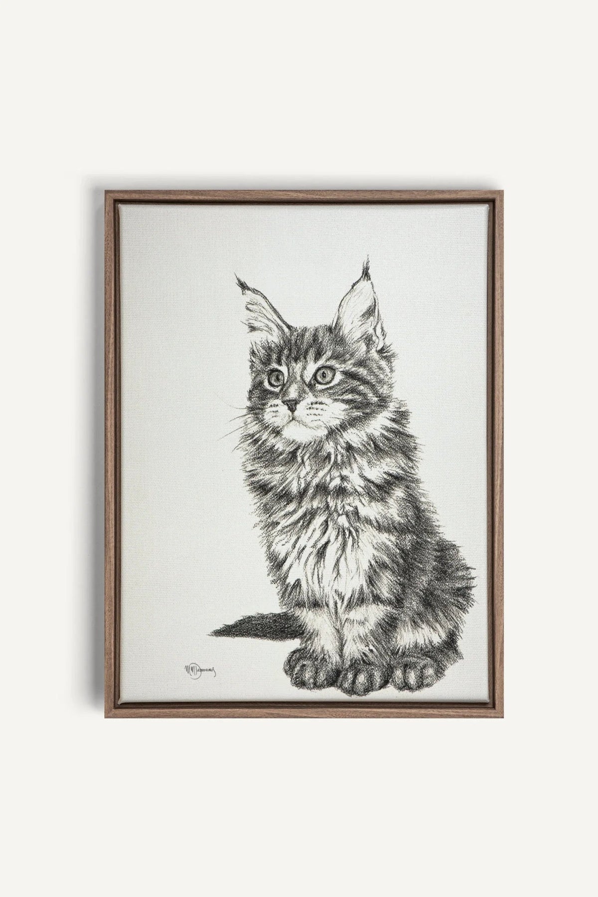 This Baby Maine Coon Cat artwork is printed in high definition on matte canvas and stretched over a solid wooden frame.