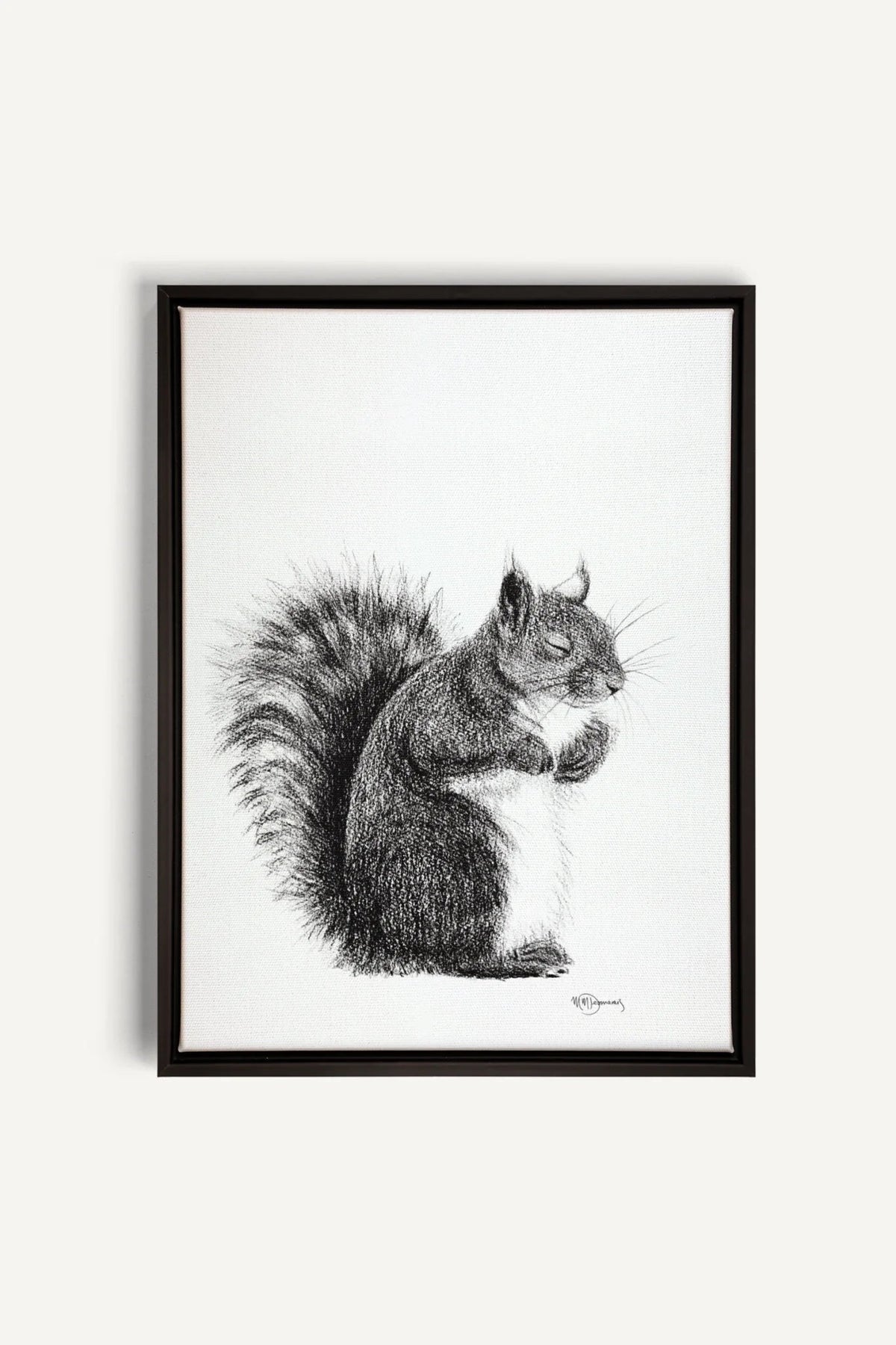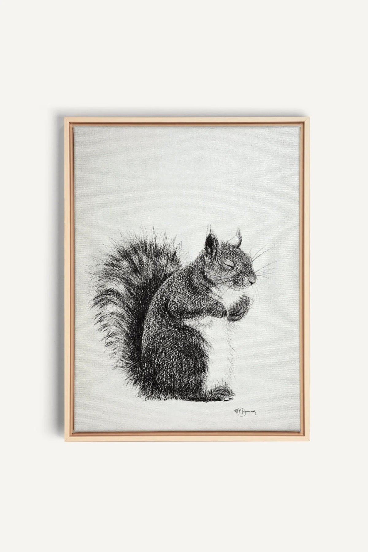 Created in collaboration with Canadian photographer Philip Childs, this Sleeping Baby Squirrel artwork is printed in high definition on matte canvas and stretched over a solid wooden frame.