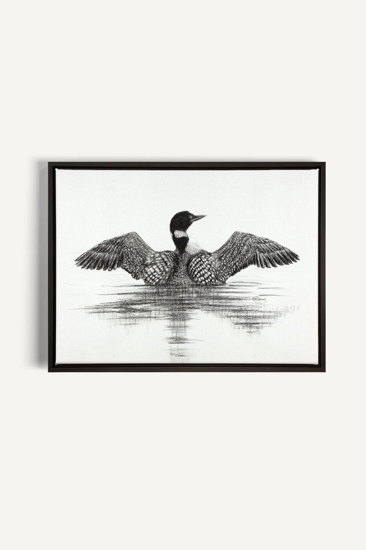 This Magnificiant Canadian Loon fine art print is made from the original charcoal drawing of the artist Marie-Michèle Desmarais.