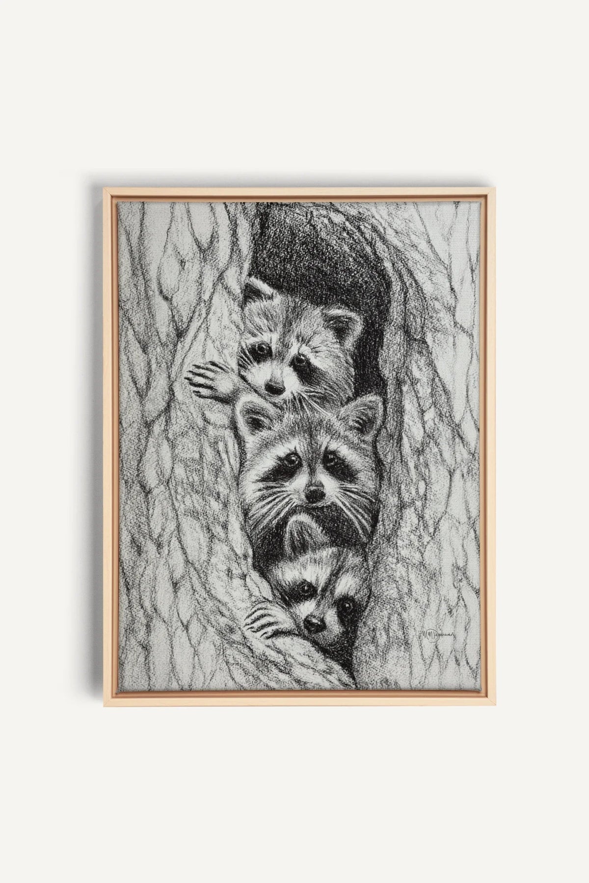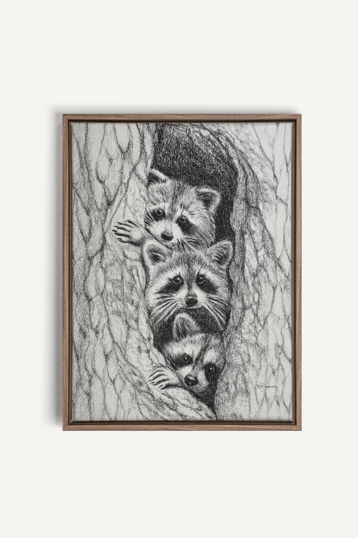 This adorable raccoon illustration is perfect for the living room wall or to decorate your bedroom.