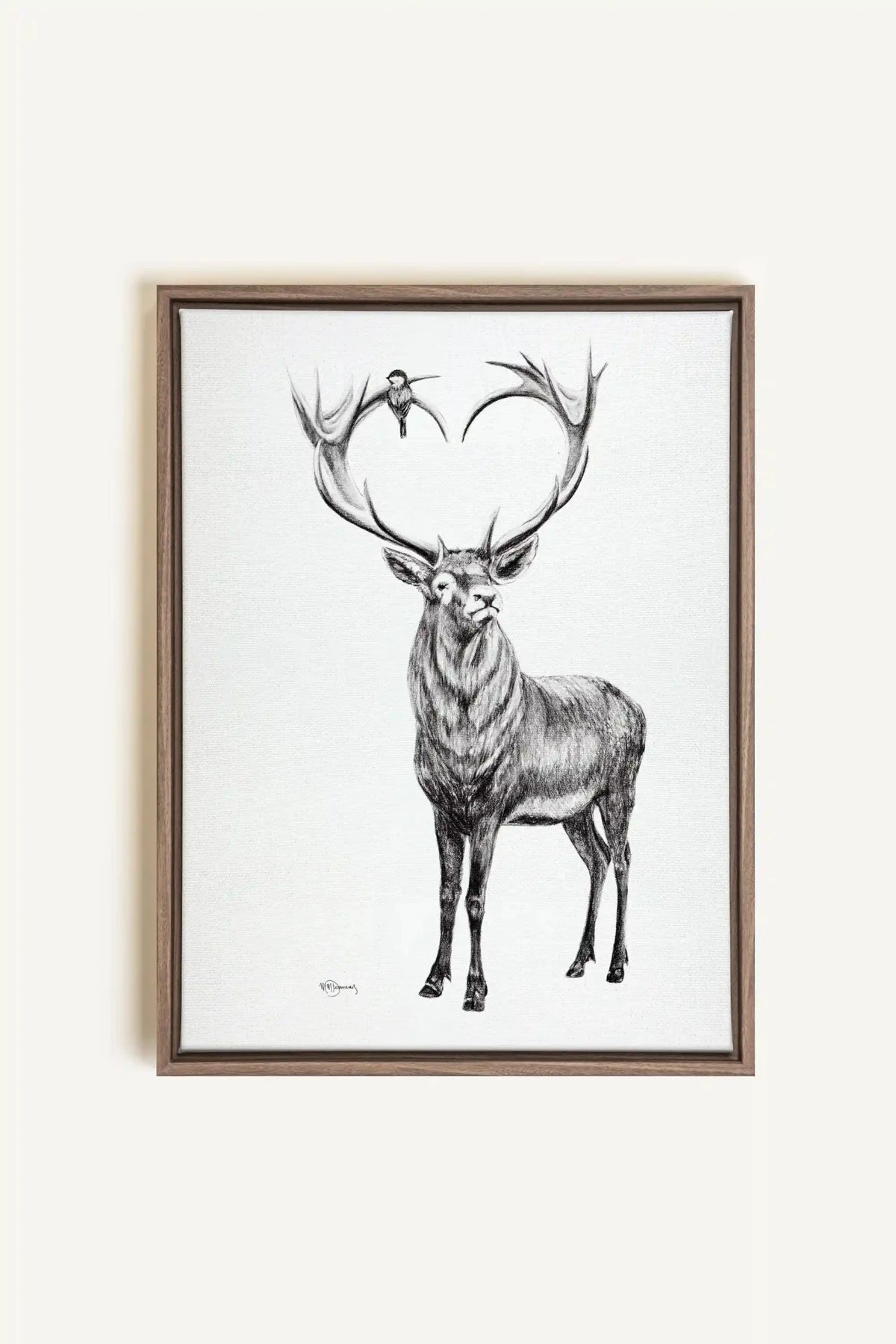 Deer with heart shaped antlers, canvas print